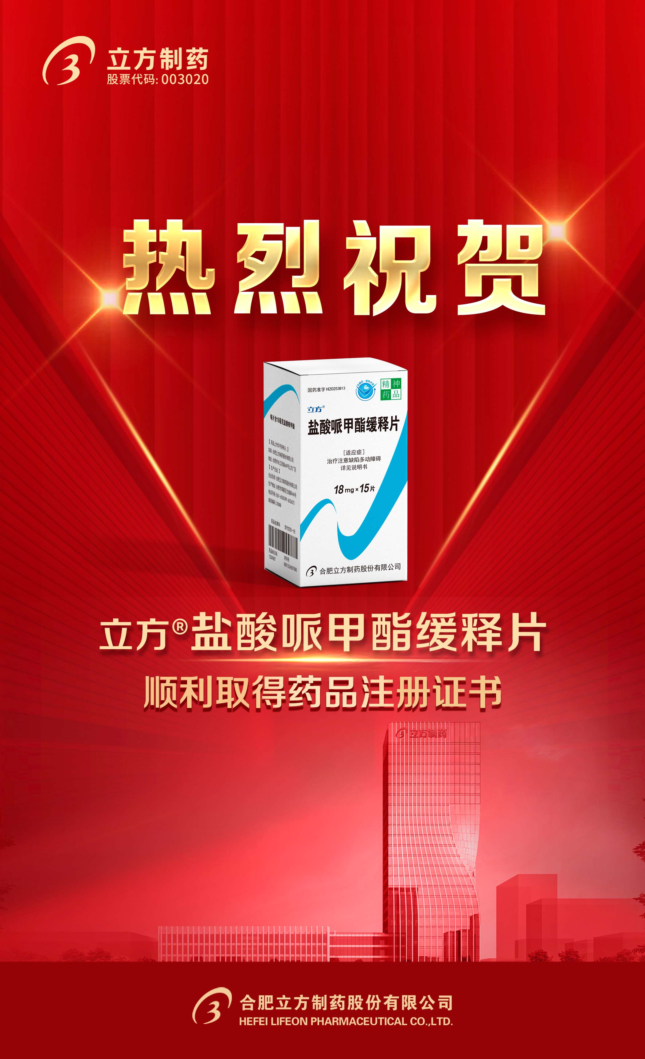 近日,合肥立方制药股份有限公司(以下简称“公司”或“立方制药”)收到国家药品监督管理局核准签发的盐酸哌甲酯缓释片《药品注册证书》。